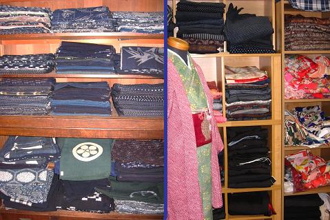 型染め 絣 (古い伊予絣を含む) 縮緬・錦紗 着物・帯 (最近の着れる着物や帯も含む) 酒袋 裂き織り・パッチワーク向きの使える古い着物が500円より |